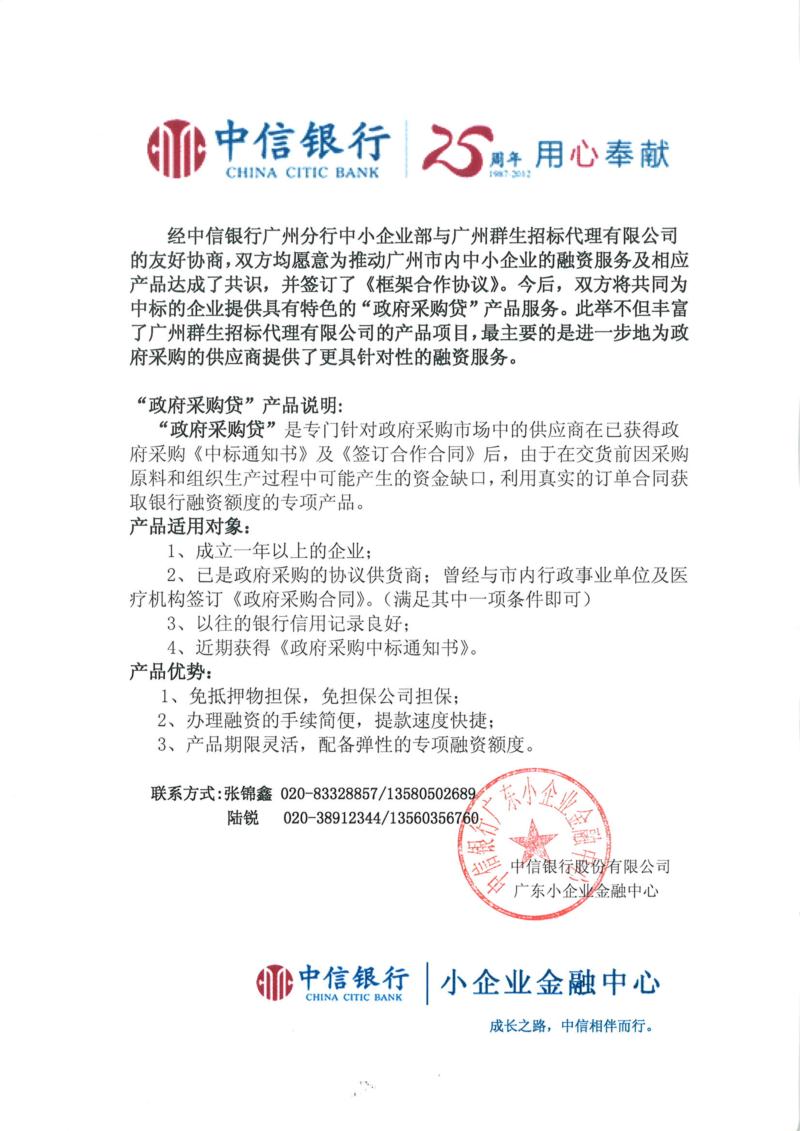 中信銀行政府采購貸產(chǎn)品說明